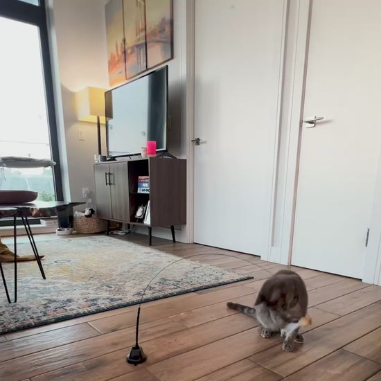 - Self-holding base and a wire that moves around while your cat plays with the bird.